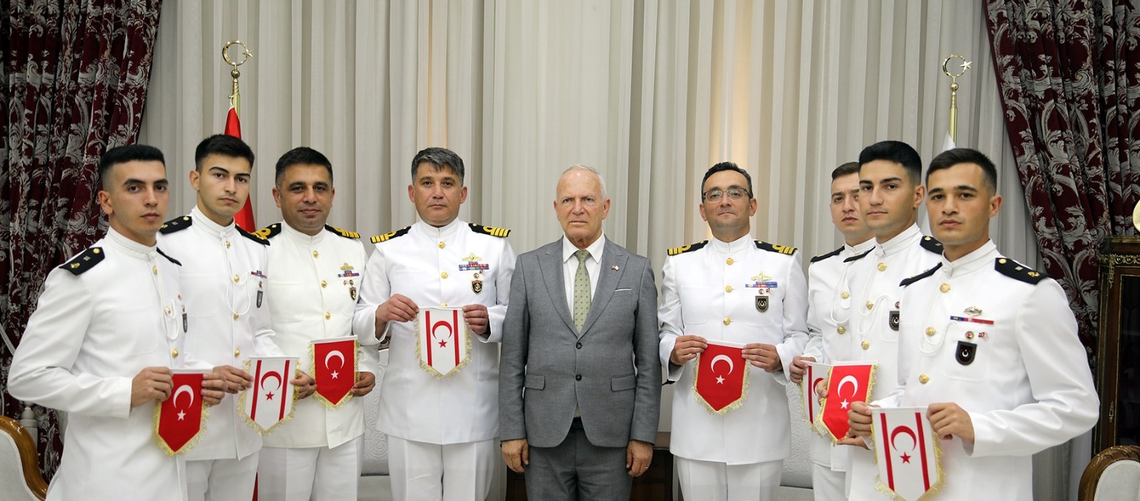 Cumhuriyet Meclisi Başkanı Zorlu Töre, 20 Temmuz Barış ve Özgürlük Bayramı kutlamaları kapmasında KKTC’de bulunan Deniz Harp Okulu komutan ve öğrencilerini kabul etti.